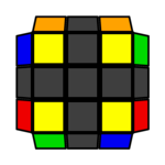 如图所示,任何一侧的角块颜色都不同。此时每一侧都是等价的,因此无需做方向调整。