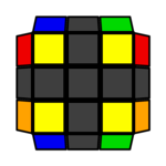 如图所示,任何一侧的角块颜色都不同。此时每一侧都是等价的,因此无需做方向调整。